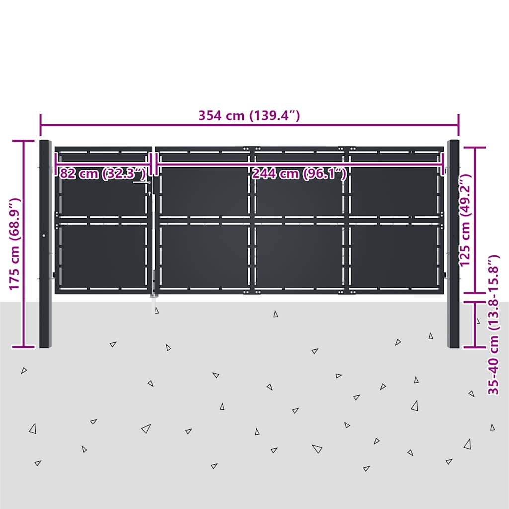 Cancello da Giardino in Acciaio 350x125 cm Antracite 144537