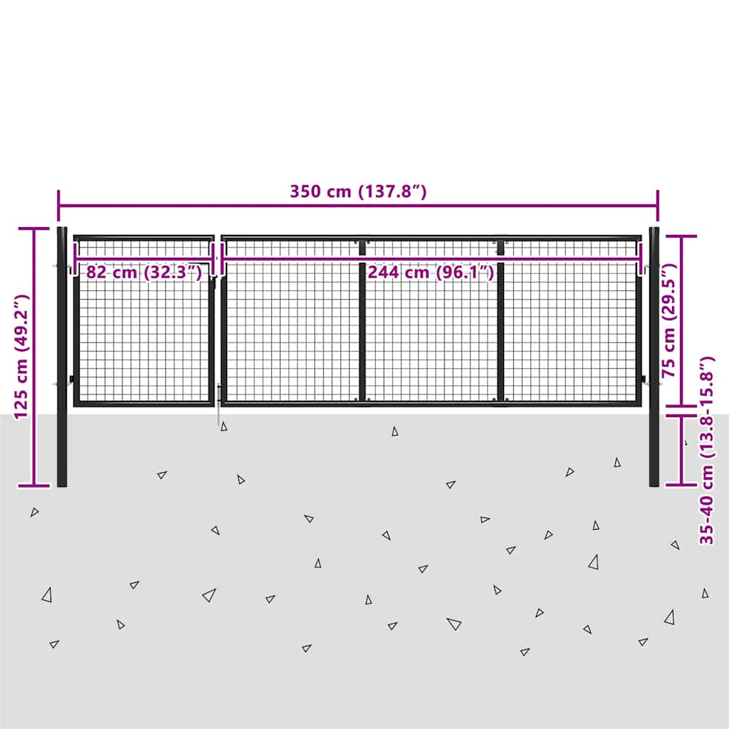 Cancello da Giardino in Acciaio 350x75 cm Antracite 144322