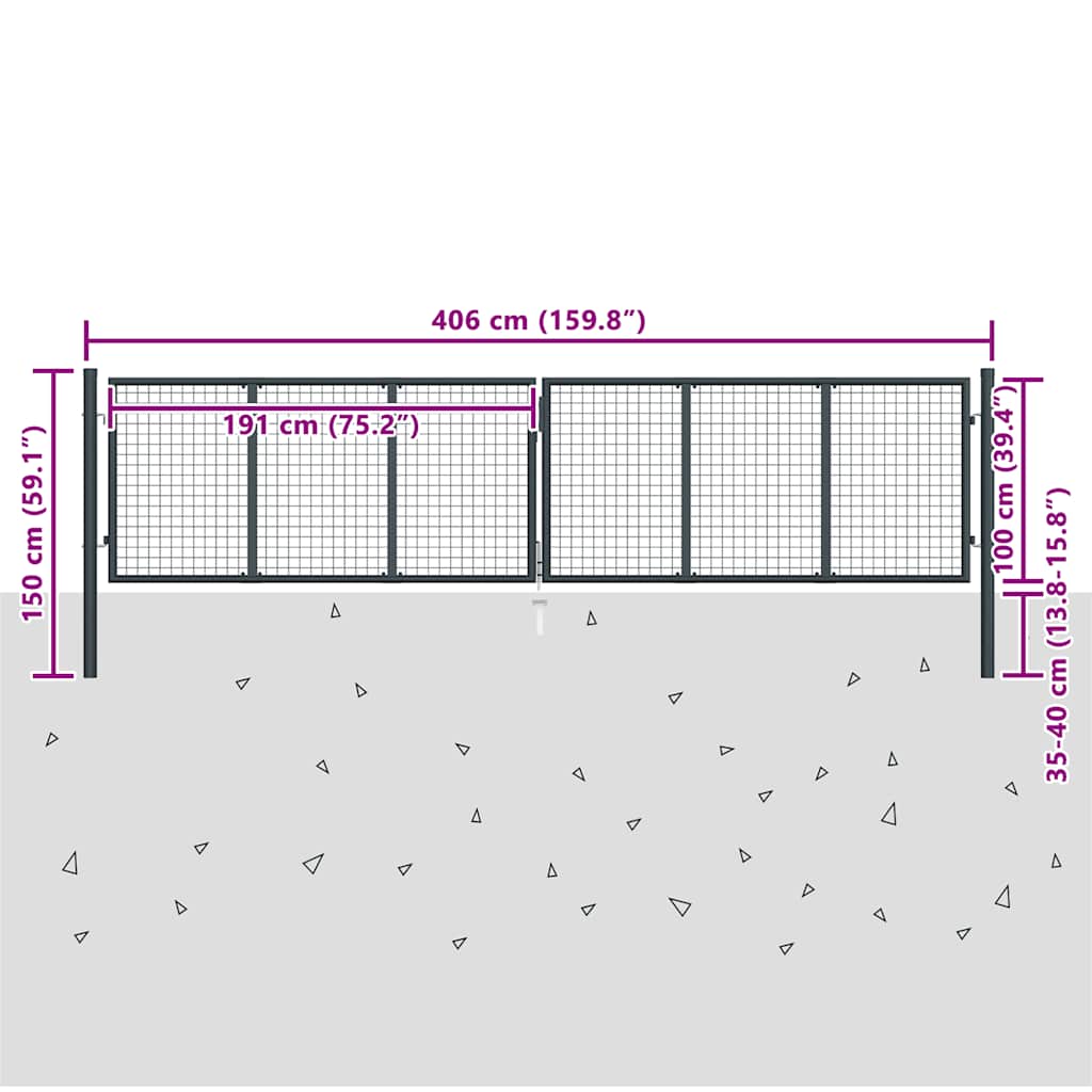 Cancello da Giardino in Rete di Acciaio Zincato 400x100 cm Grigio 145777