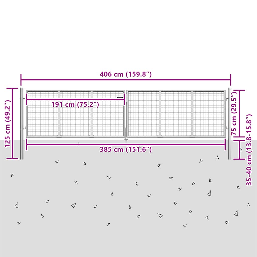 Cancello da Giardino in Acciaio Zincato 400x75 cm Argento 144298
