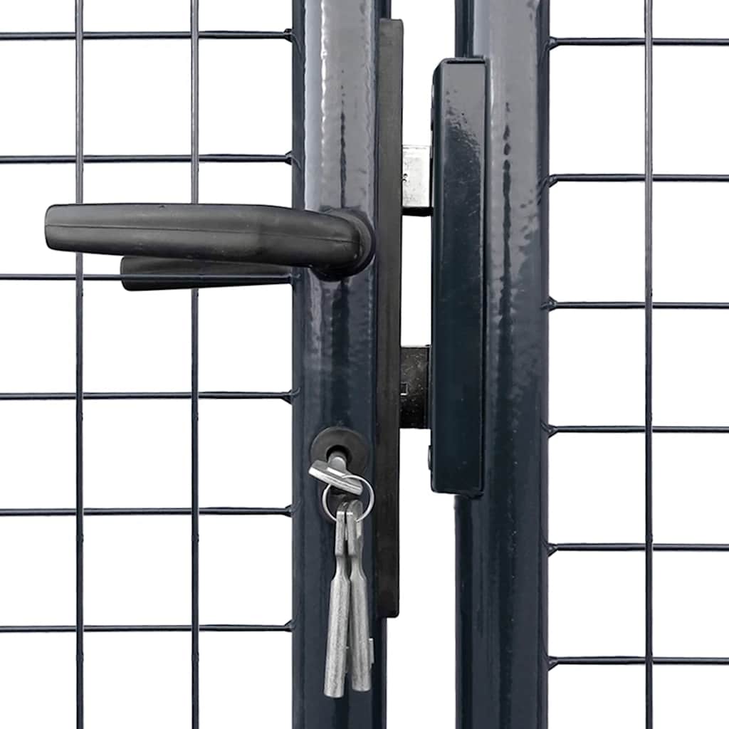 Il cancello da giardino è perfetto nella lavorazione e realizzato in acciaio zincato con una finitura a polvere, resistente alla ruggine e dalla struttura robusta. Ha due montanti laterali con perni a cerniera per una facile installazione. Per assicurare il fissaggio a terra, il cancello è dotato di picchetto.