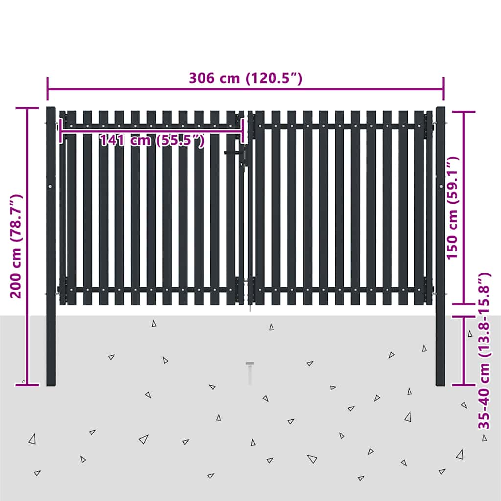 Cancello per Recinzione a doppia Porta in Acciaio 300x150 cm Antracite 146353