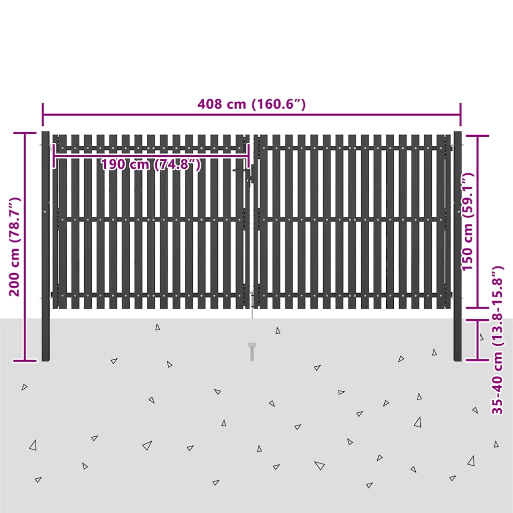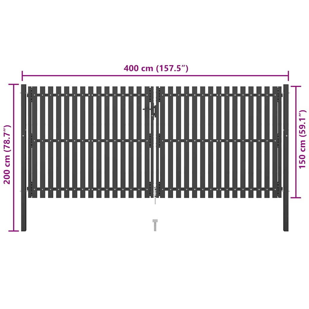Cancello per Recinzione in Acciaio 4x2 m Antracite 146336
