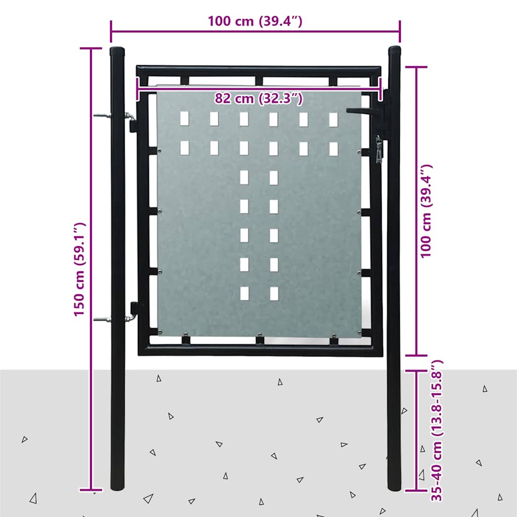 Cancello per Recinzione a una Porta Nero 100x100 cm 141685