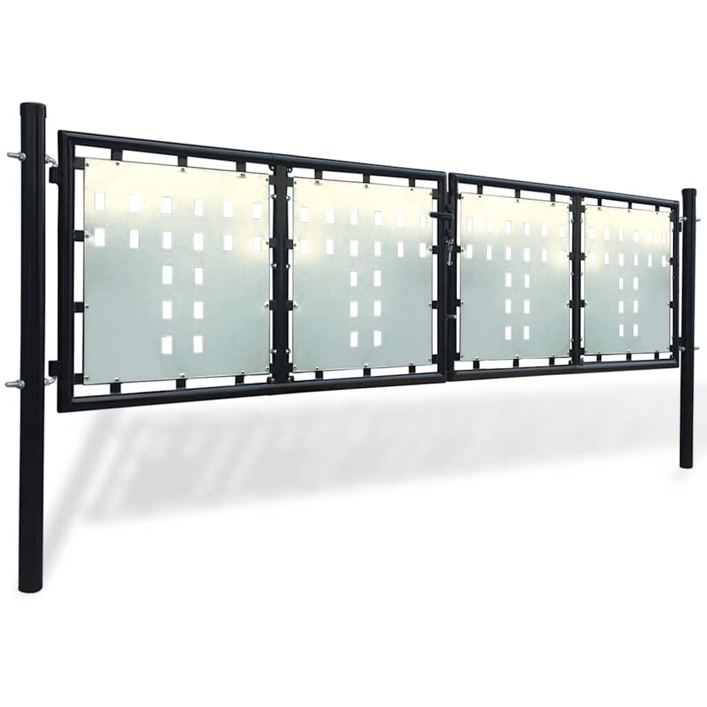 Il foglio zincato con un foro con design decorativo rafforza il telaio, quindi il cancello aggiungerà alta sicurezza. Sarà allo stesso tempo un ingresso favoloso sulla vostra proprietà. Realizzato in acciaio robusto, il cancello è rivestito a polvere contro la ruggine e corrosione.