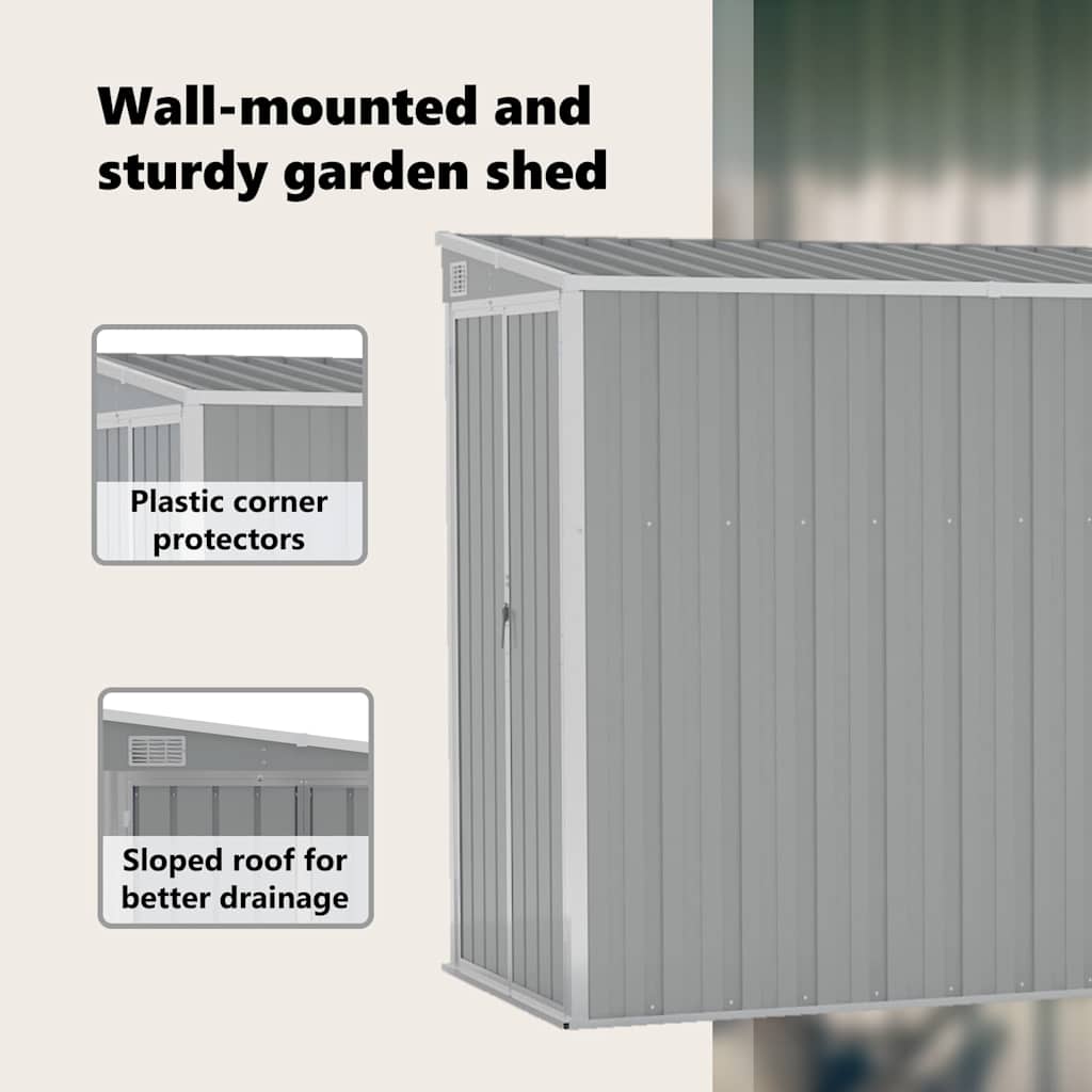 Questo capanno da giardino a parete è perfetto per riporre vari oggetti come utensili, mobili da giardino, attrezzi da giardino, ecc. Il capanno offre protezione da sporcizia, polvere, vento e agenti atmosferici.