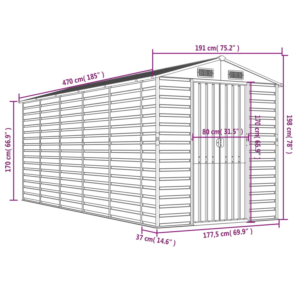 - Materiale robusto: la casetta per gli attrezzi da giardino è realizzata in acciaio zincato, che previene la ruggine e resiste all'uso prolungato. L'acciaio è un materiale eccezionalmente duro e resistente. Offre robustezza e stabilità. La zincatura offre una migliore protezione contro la corrosione ed è utile per i prodotti che verranno utilizzati all'aperto e in ambienti difficili.