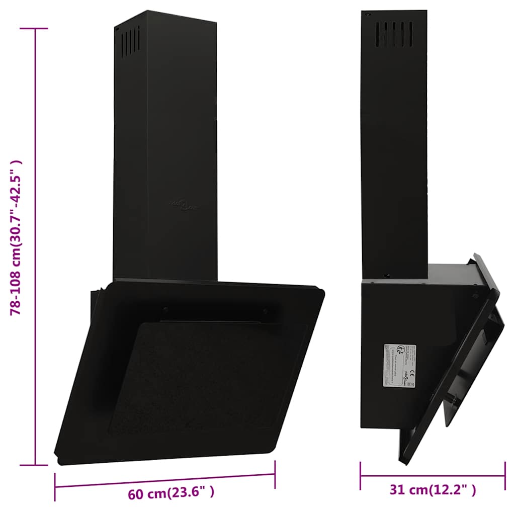 Cappa a Parete 60 cm in Acciaio Inox e Vetro Temperato Nero 51662