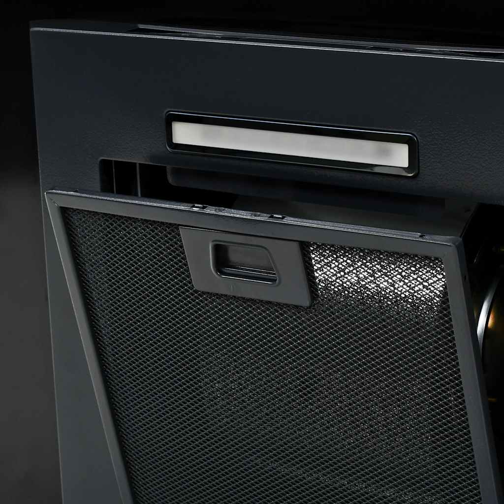 Questa cappa è dotata di un filtro antigrasso a 3 strati, in alluminio e lavabile, che protegge dal grasso l'interno della cappa ed il tubo di scarico. I comandi tattili integrati, il display a LCD e le luci a LED rendono il prodotto facile da operare e cucinare più comodo. La cappa aspirante è dotata di 3 velocità variabili per garantire un controllo completo della velocità di aspirazione e di un filtro a carbone che aiuta a purificare l'aria e rilasciare aria pulita in cucina mentre l'aspirazione esterna trasferisce gli odori di cottura all'esterno con l'aiuto del tubo di scarico incluso. L'assemblaggio è semplice.