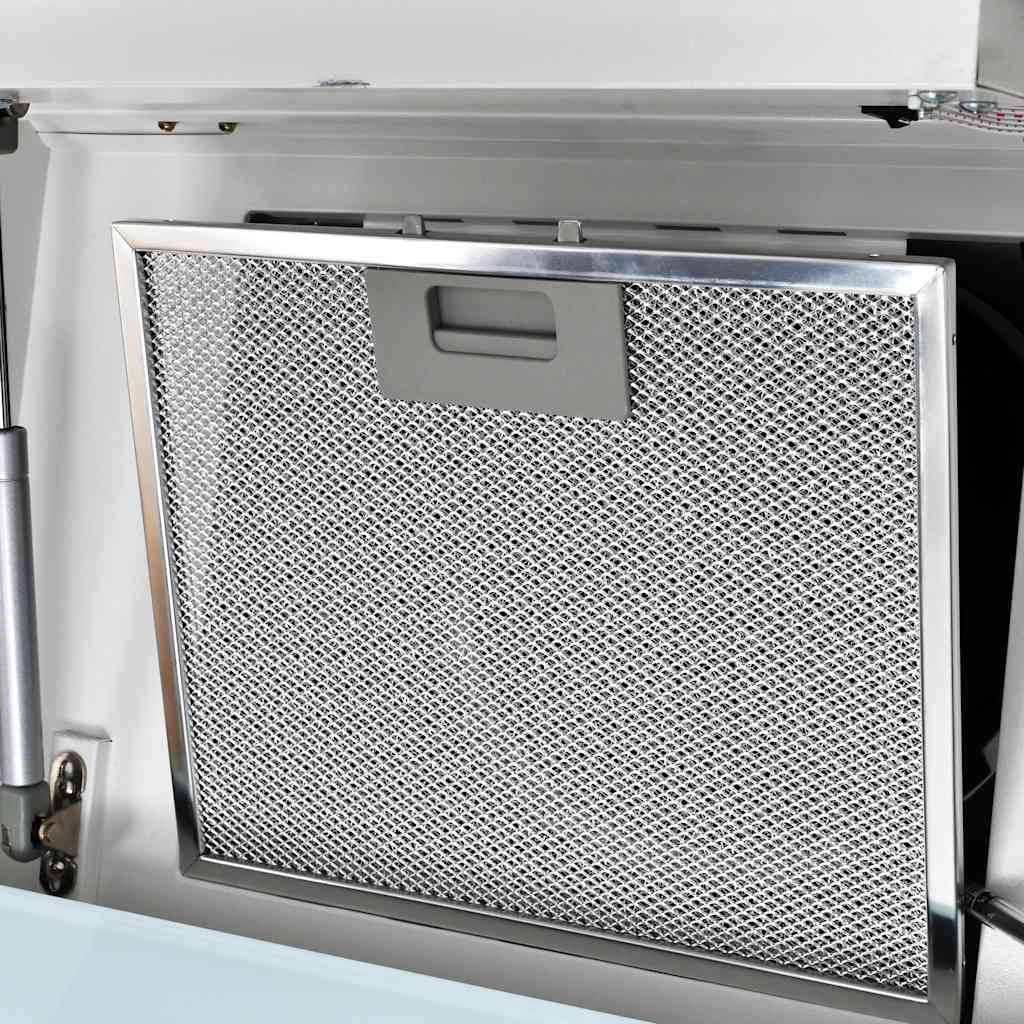 Questa cappa è dotata di un filtro antigrasso a 3 strati, in alluminio e lavabile, che protegge dal grasso l'interno della cappa ed il tubo di scarico. I comandi tattili integrati, il display a LCD e le luci a LED rendono il prodotto facile da operare e cucinare più comodo. La cappa aspirante è dotata di 3 velocità variabili per garantire un controllo completo della velocità di aspirazione e di un filtro a carbone che aiuta a purificare l'aria e rilasciare aria pulita in cucina mentre l'aspirazione esterna trasferisce gli odori di cottura all'esterno con l'aiuto del tubo di scarico incluso. L'assemblaggio è semplice.