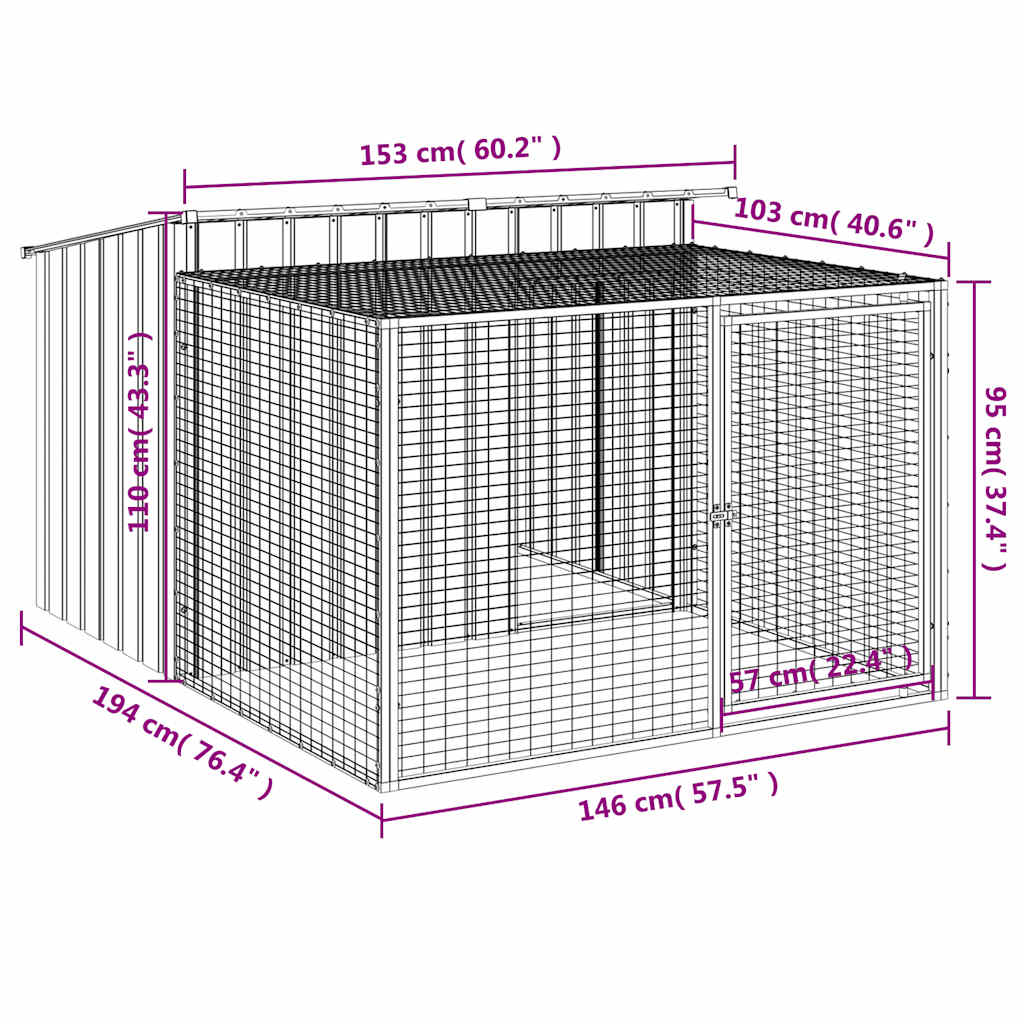 Cuccia per cani con recinto antracite 153x194x110 cm in acciaio zincato 3214222
