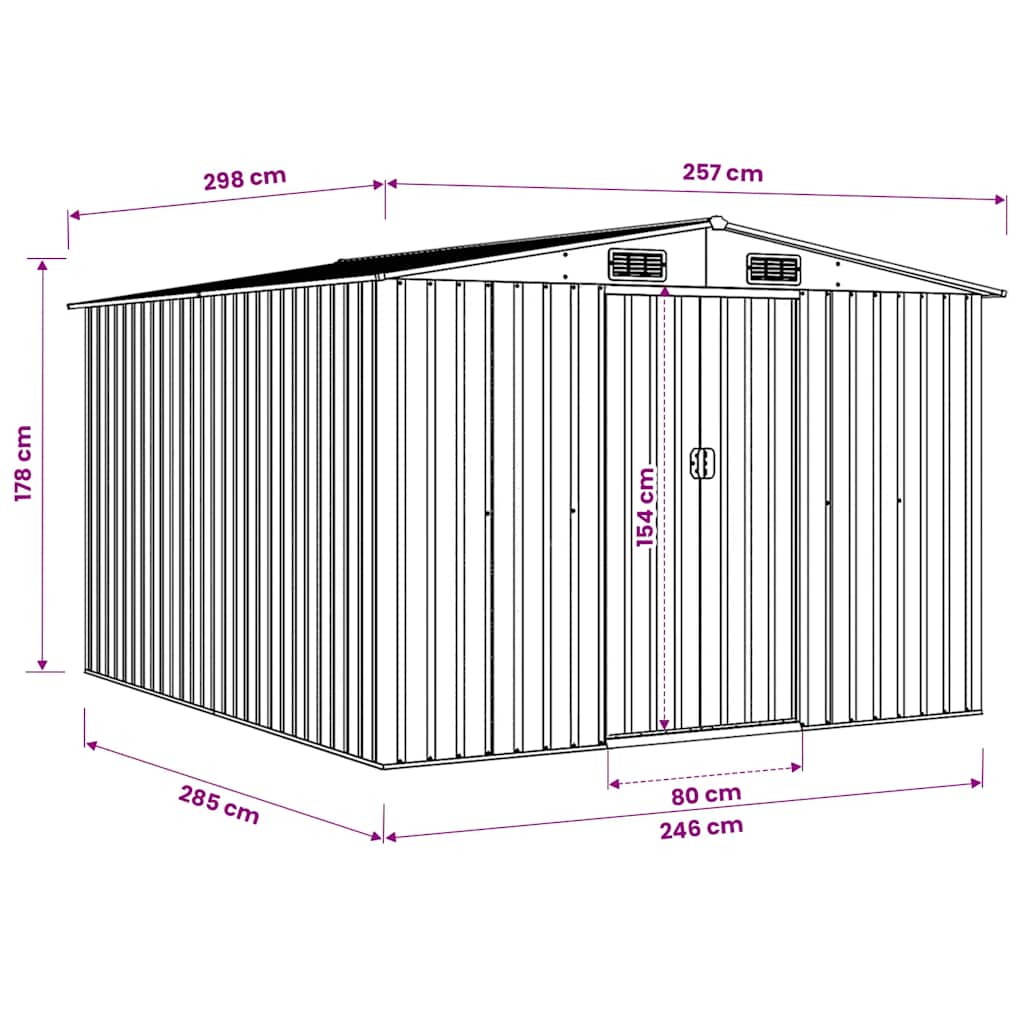 Casetta da Giardino 257x298x178 cm in Metallo Antracite 143342