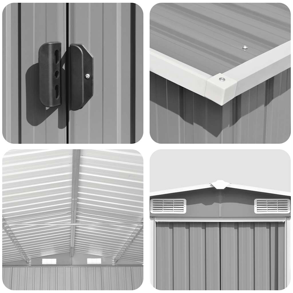 Il nostro capannone in metallo sarà perfetto per riporre un'ampia varietà di attrezzi, mobili da giardino e attrezzature da giardino. La casetta da giardino non offre solo protezione da sporco e polvere, ma anche da vento e intemperie.