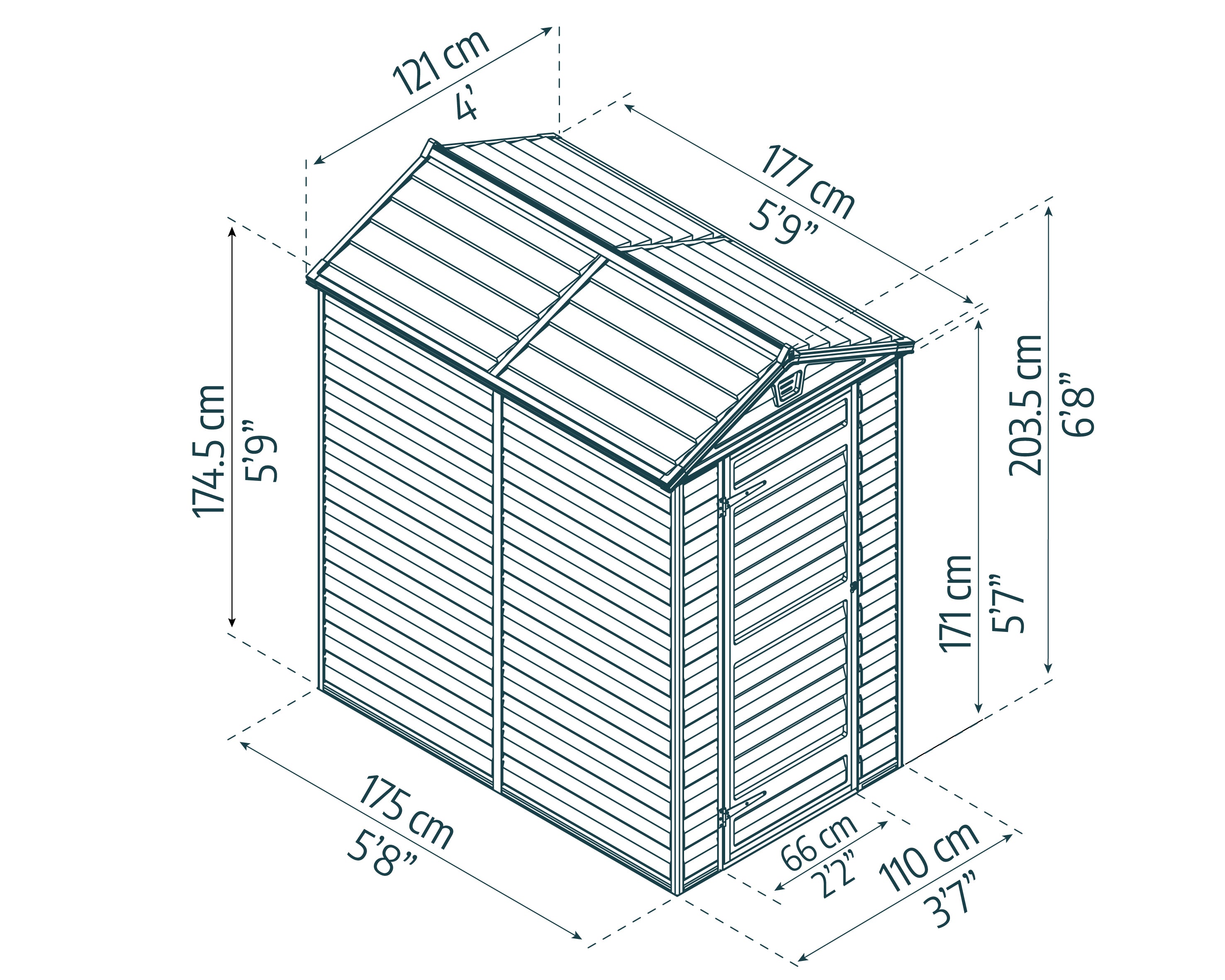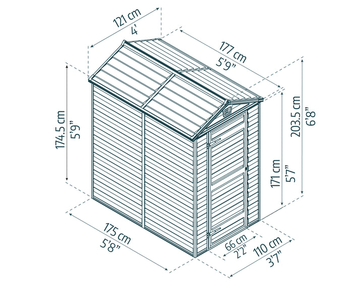 Casetta Da Giardino in Policarbonato Skylight 176X120X203 cm Colore Grigio Scuro