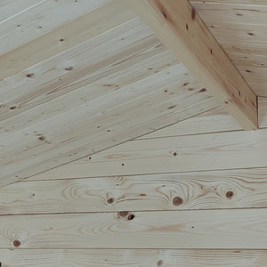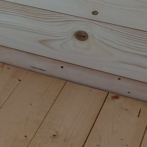 Casetta in Block House per una costruzione semplice, PRODOTTA IN ITALIA; pareti in perlina d'abete naturale sp.16mm non trattate, irrobustite con ancoraggio delle perline negli angoli; PORTA DOPPIA CIECA A BATTENTE; falde tetto in pannello OSB3 spessore 12mm, copertura con guaina ardesiata grigia da 3mm; pavimento in OSB3 spessore 12mm con listelli d'appoggio impregnati in autoclave; fornita in kit comprensivo di ferramenta e istruzioni di montaggio