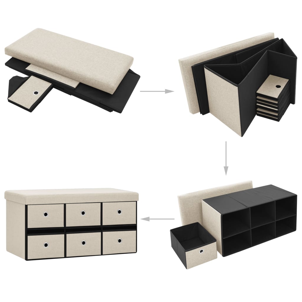 Cassapanca Pieghevole Bianco Crema 76x38x38 cm in Simil Lino 338812