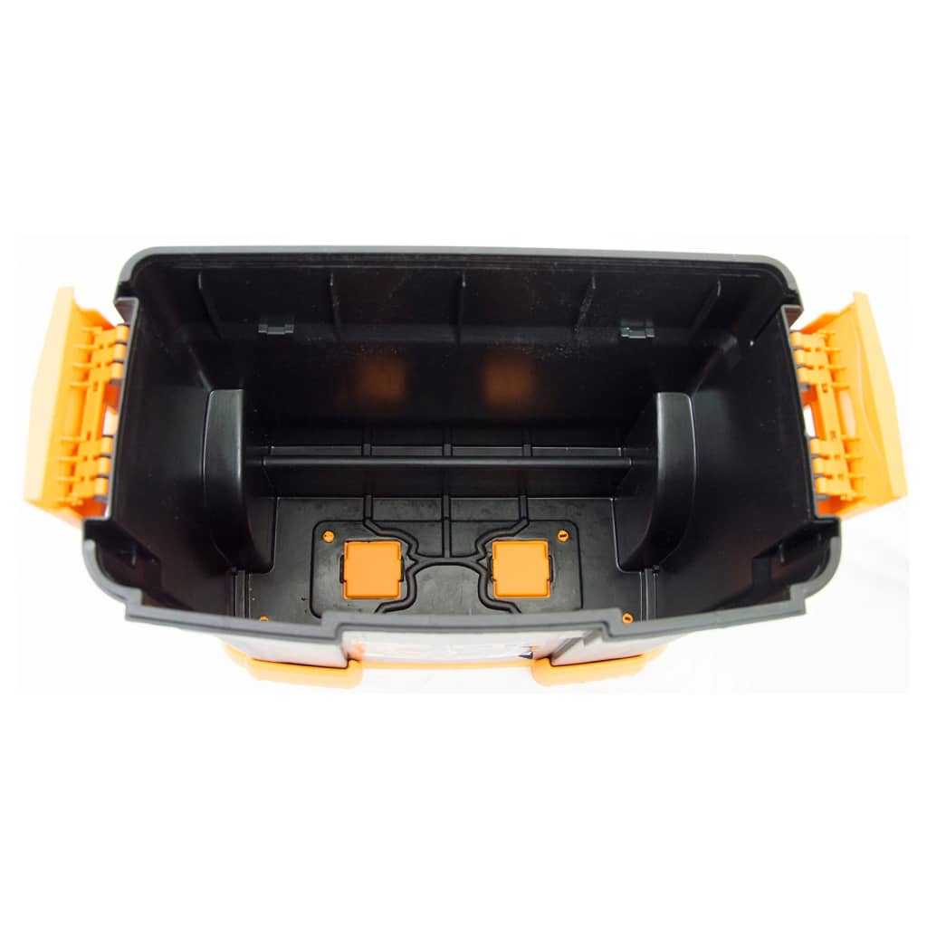 Questa cassetta degli attrezzi ha un interno spazioso per contenere strumenti come un martello, metro a nastro, cacciaviti, chiavi inglesi, ecc.