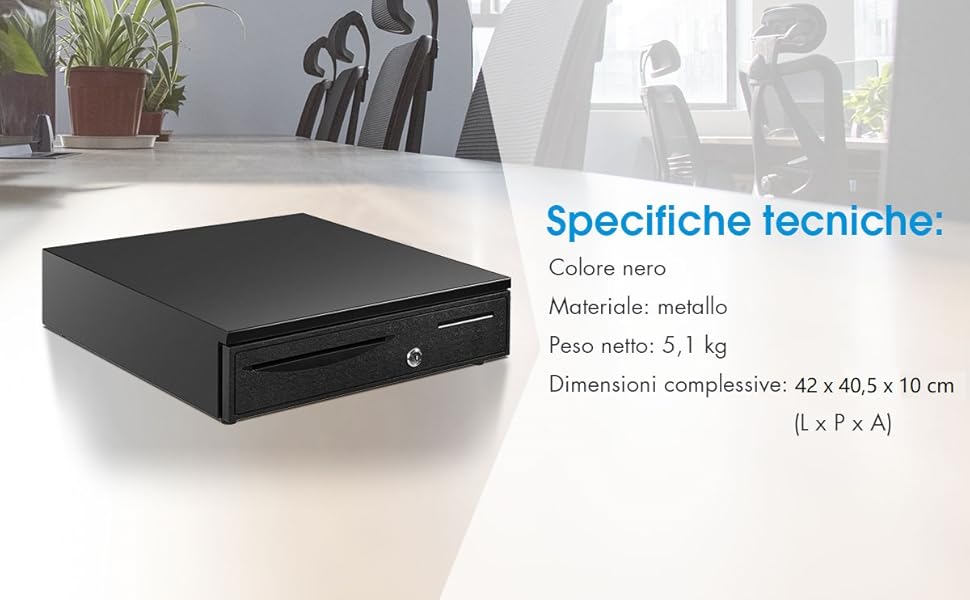 - 【Apertura】Questo cassetto portasoldi con chiave è compatto e robusto, viene aperto elettricamente da una stampante per ricevute o da un registratore di cassa. In alternativa, il cassetto contanti può essere aperto anche con la sola chiave.