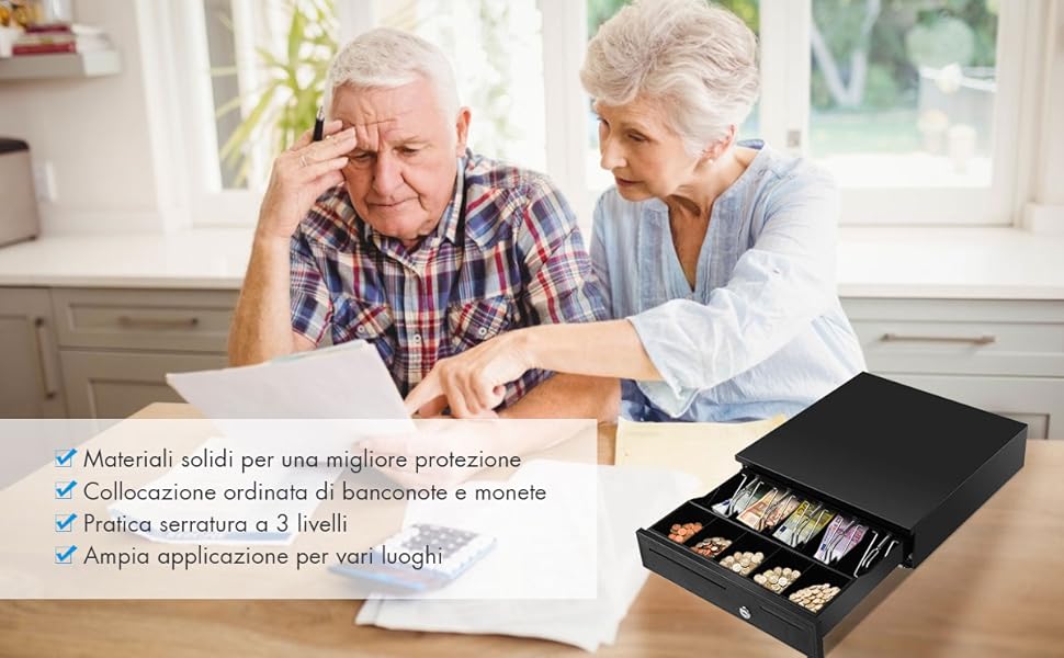 - 【Versatile】 Il cassetto portasoldi è ideale per hotel, negozi, ristoranti e tutte le attività che ne necessitano.