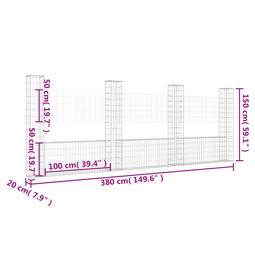Cesto Gabbione a U con 4 Pali in Ferro 380x20x150 cm 151284