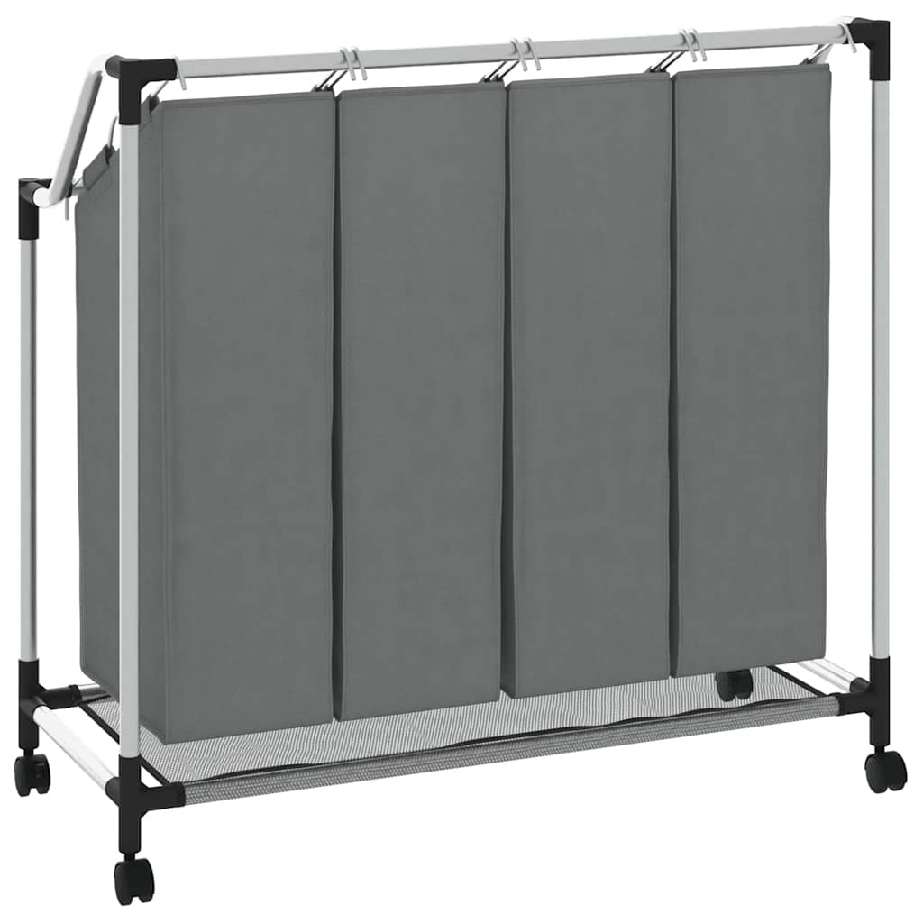 Cesto Portabiancheria con Ruote 4 Scomparti Grigio 42001900