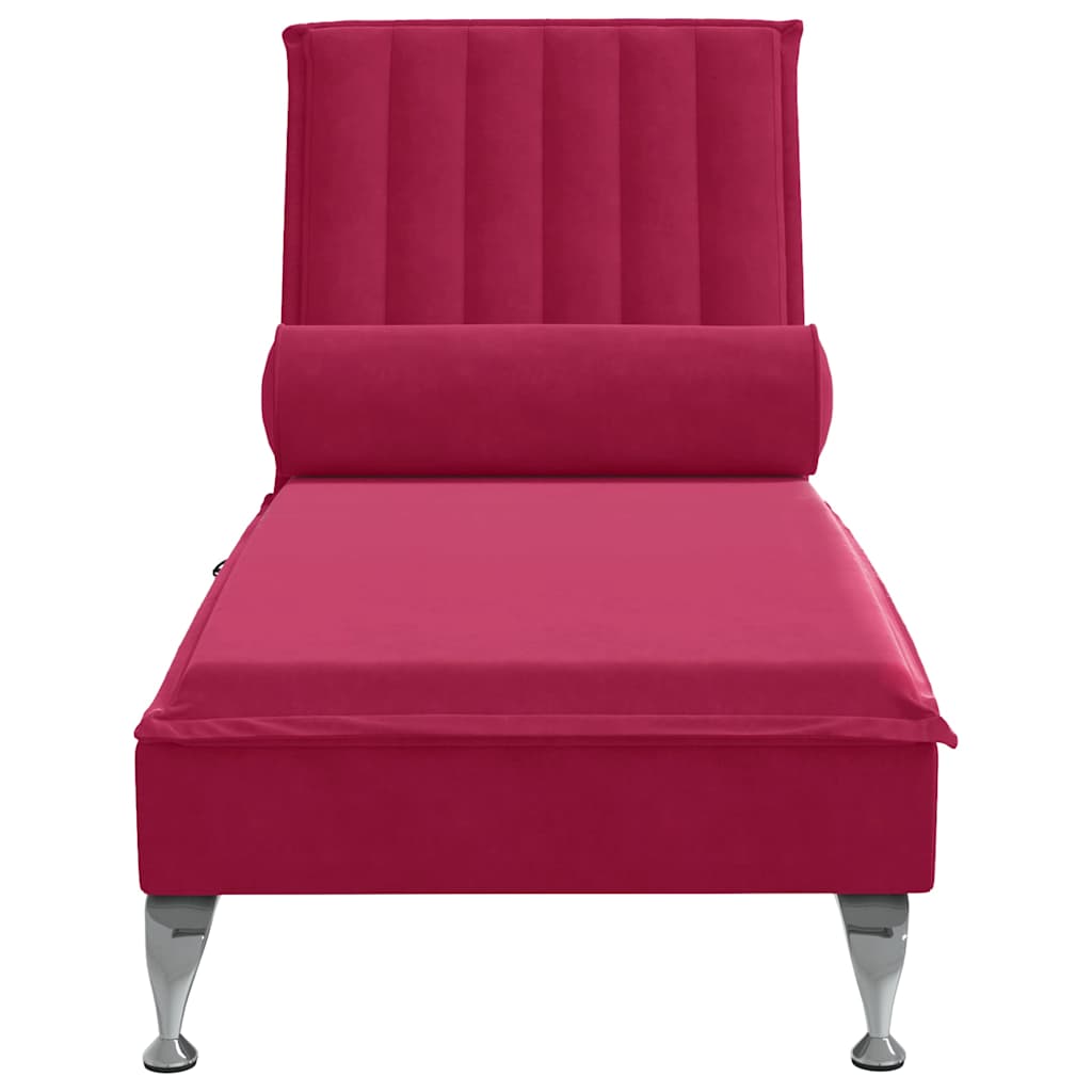 Chaise Longue Massaggi con Cuscino a Rullo Rosso Vino Velluto 379463