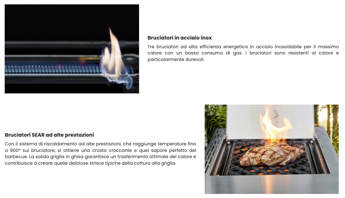 Materiale bruciatori: acciaio inox; ceramica bruciatore laterale