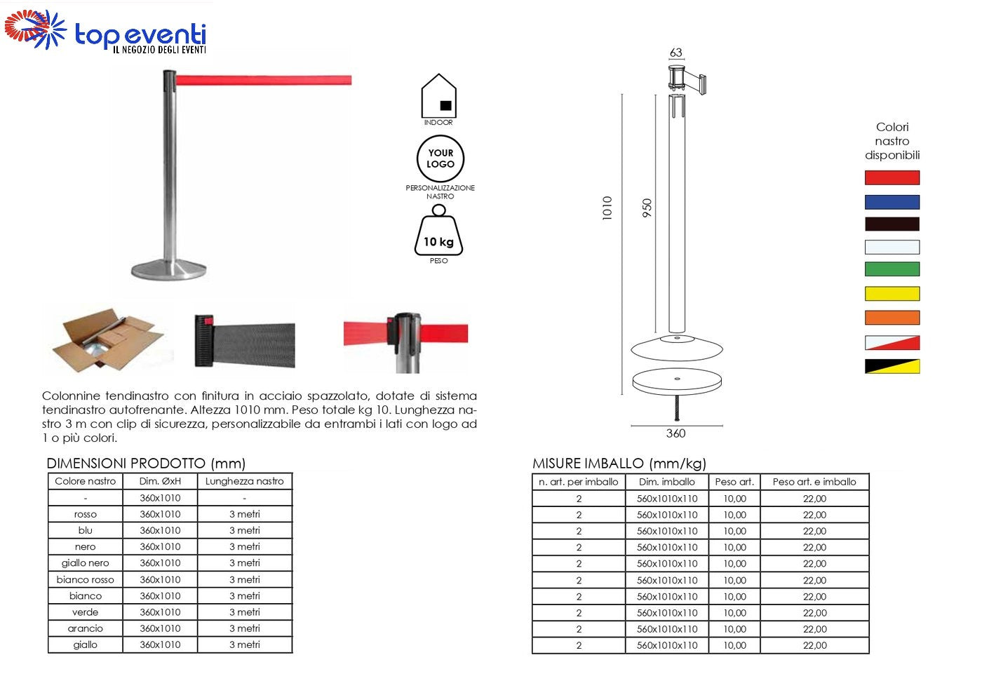 Colonnina tendinastro con finitura acciaio spazzolato, dotata di sistema tendinastro autofrenante.
