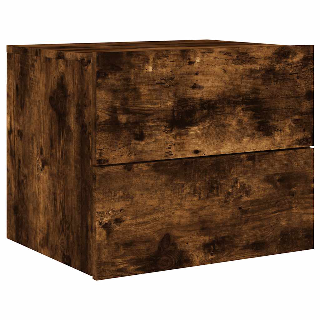 Comodini a Parete con luci LED 2 pz Rovere Fumo 836821