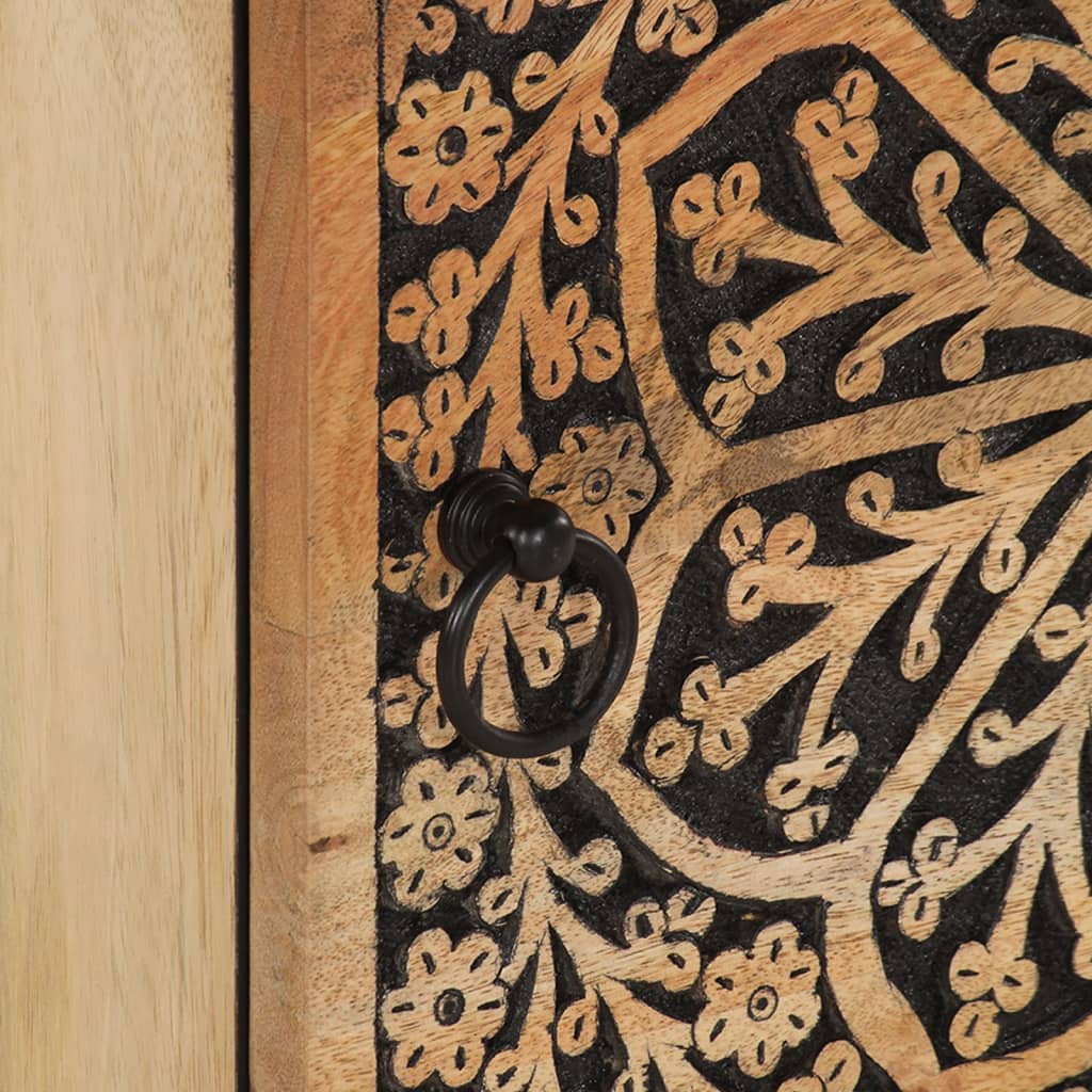 - Materiale: Legno massello di mango con finitura naturale, legno multistrato, ferro