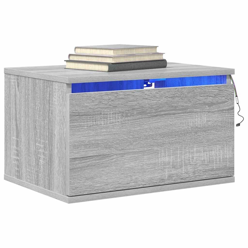 Comodino a Parete con luci LED Grigio Sonoma 836836