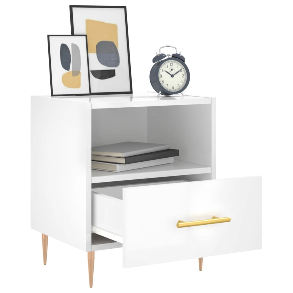 Comodino Bianco Lucido 40x35x47,5 cm in Legno Multistrato 827408
