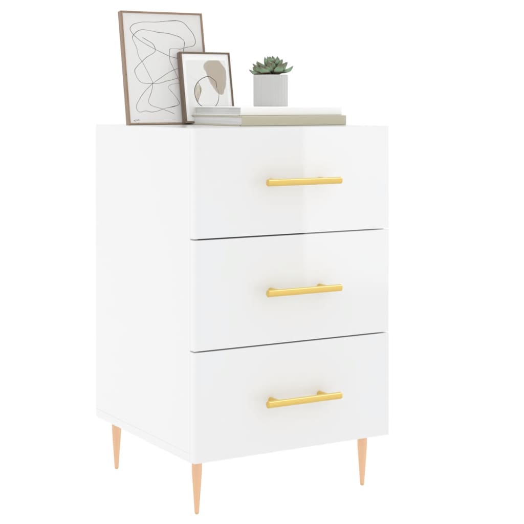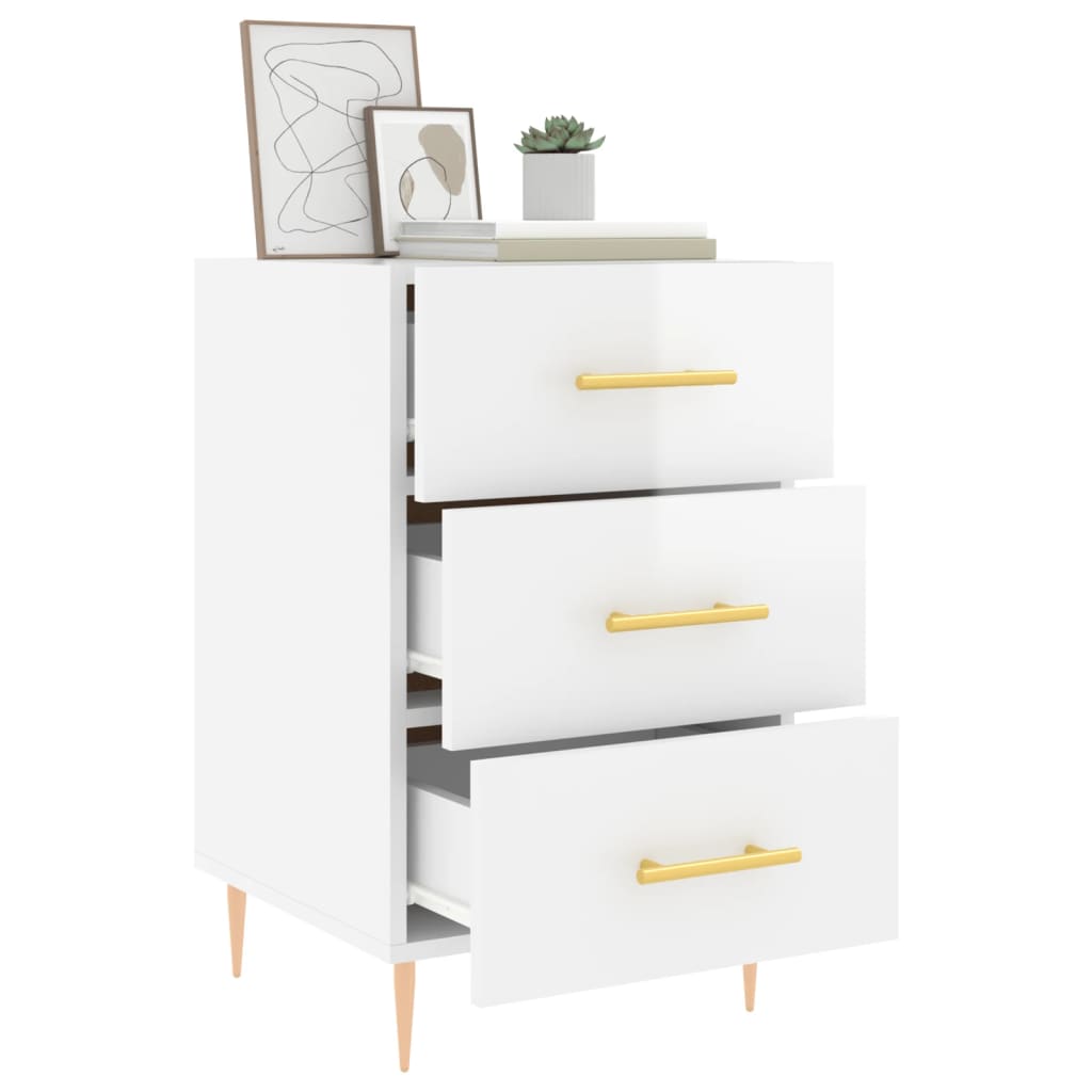 Comodino Bianco Lucido 40x40x66 cm in Legno Multistrato 827646