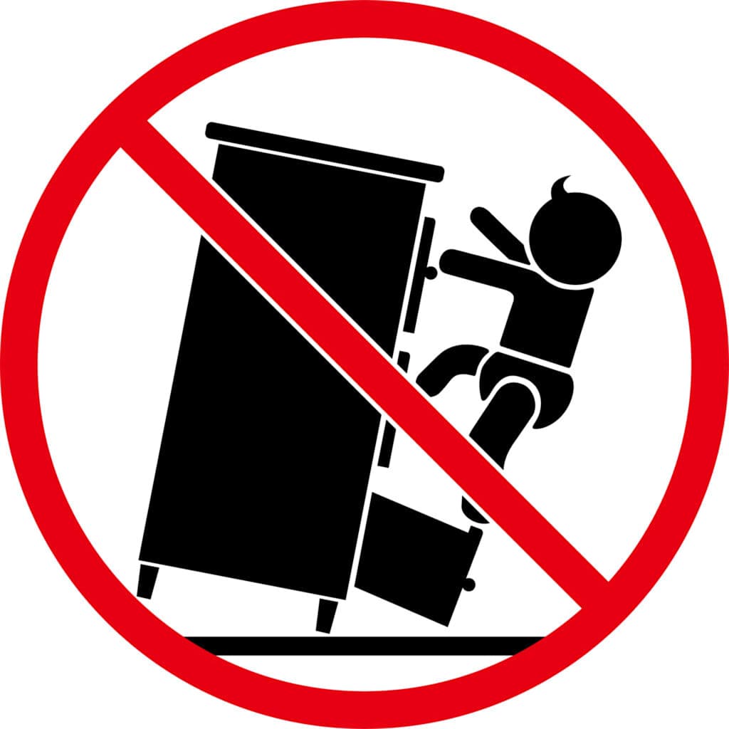 - Per evitare il ribaltamento, questo prodotto deve essere utilizzato con il dispositivo di fissaggio a parete incluso.