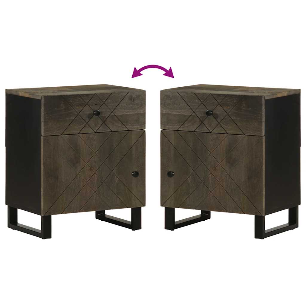 Comodino Nero 50x33x60 cm in Legno Massello di Mango 4017692