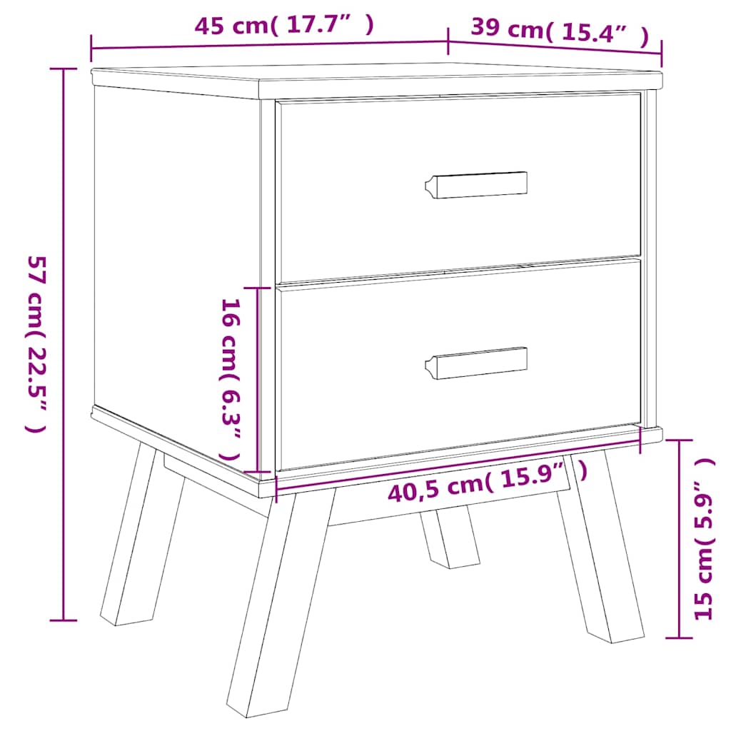 Comodino OLDEN Grigio e Marrone in Legno Massello di Pino 358583