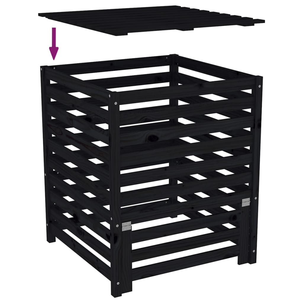 Compostiera Nera 82,5x82,5x99,5 cm in Legno Massello di Pino 823819