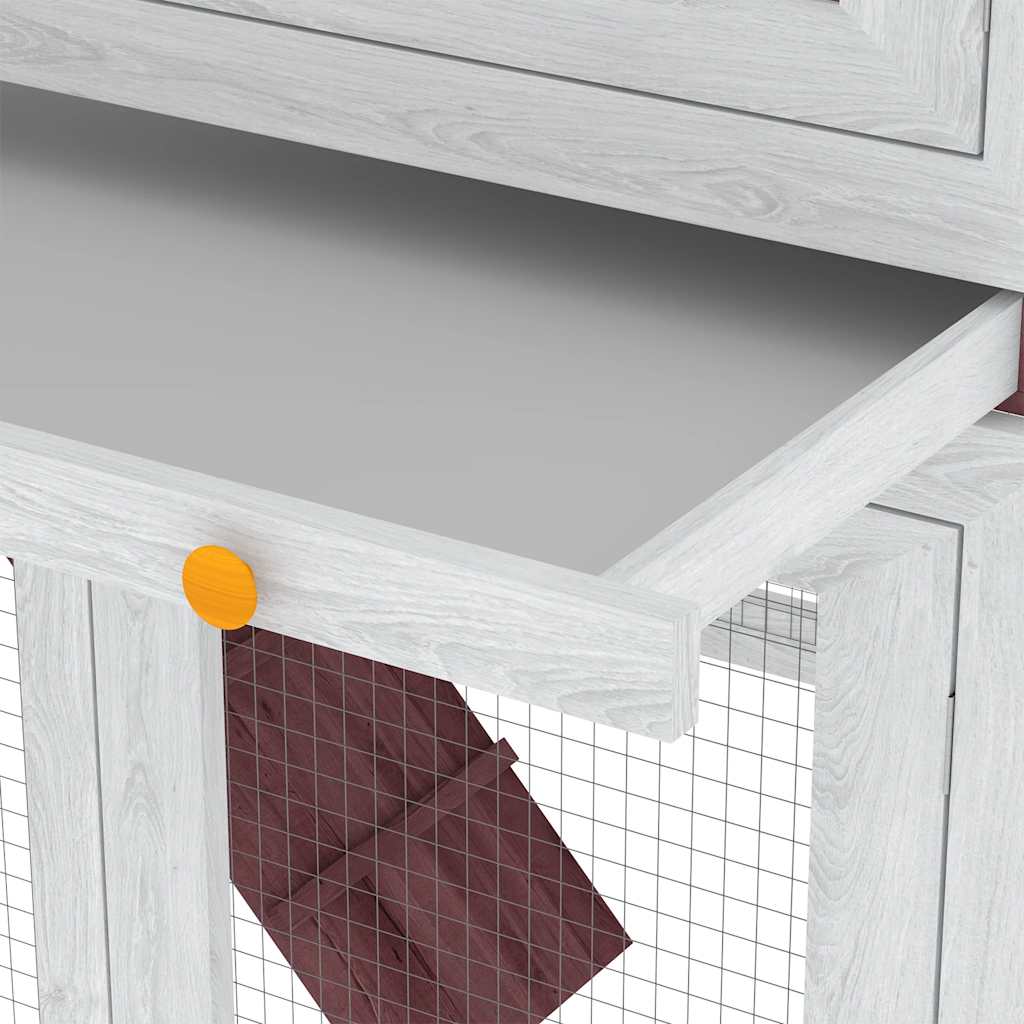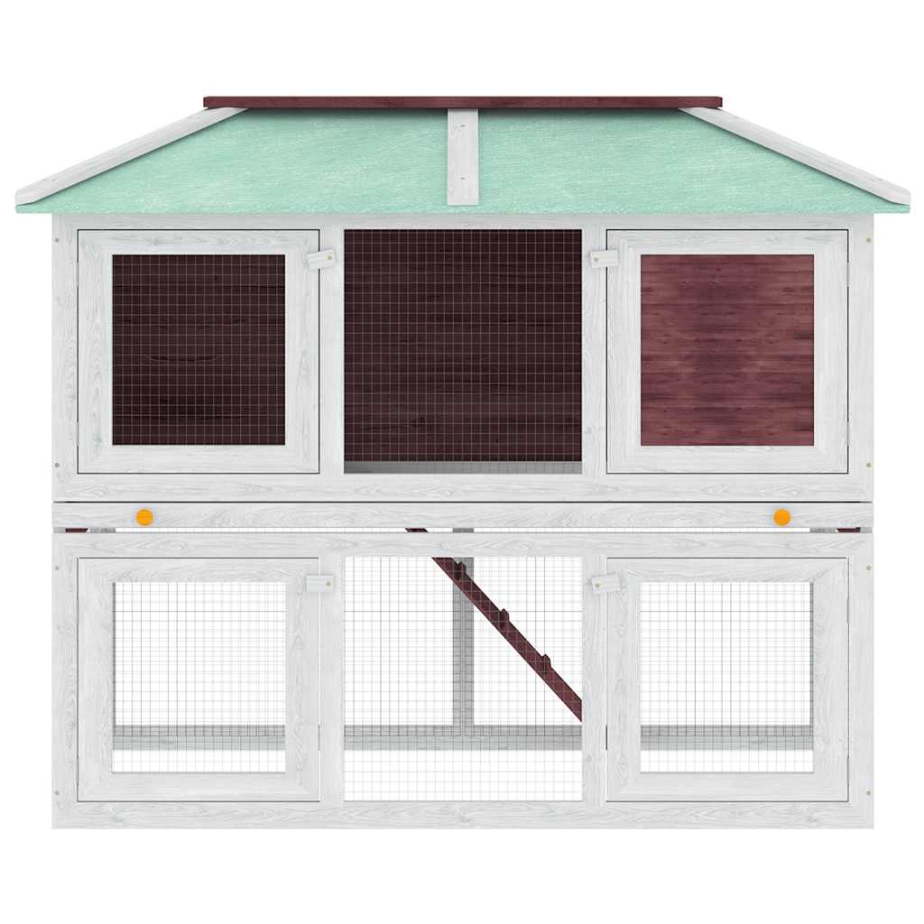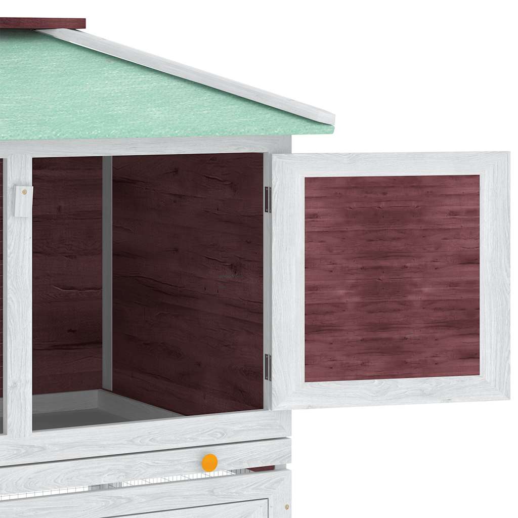 La gabbia per animali è realizzata con un telaio in legno di abete che la rende robusta per anni. Il suo tetto verde protegge dalla pioggia mentre l'ampio riparo è perfetto per dormire. La scala è facile da percorrere e porta dal livello basso al piano superiore. Il vassoio estraibile rende facile la pulizia, mentre le porte si chiudono facilmente. Questa gabbia in legno per conigli è perfetta per i piccoli animali.