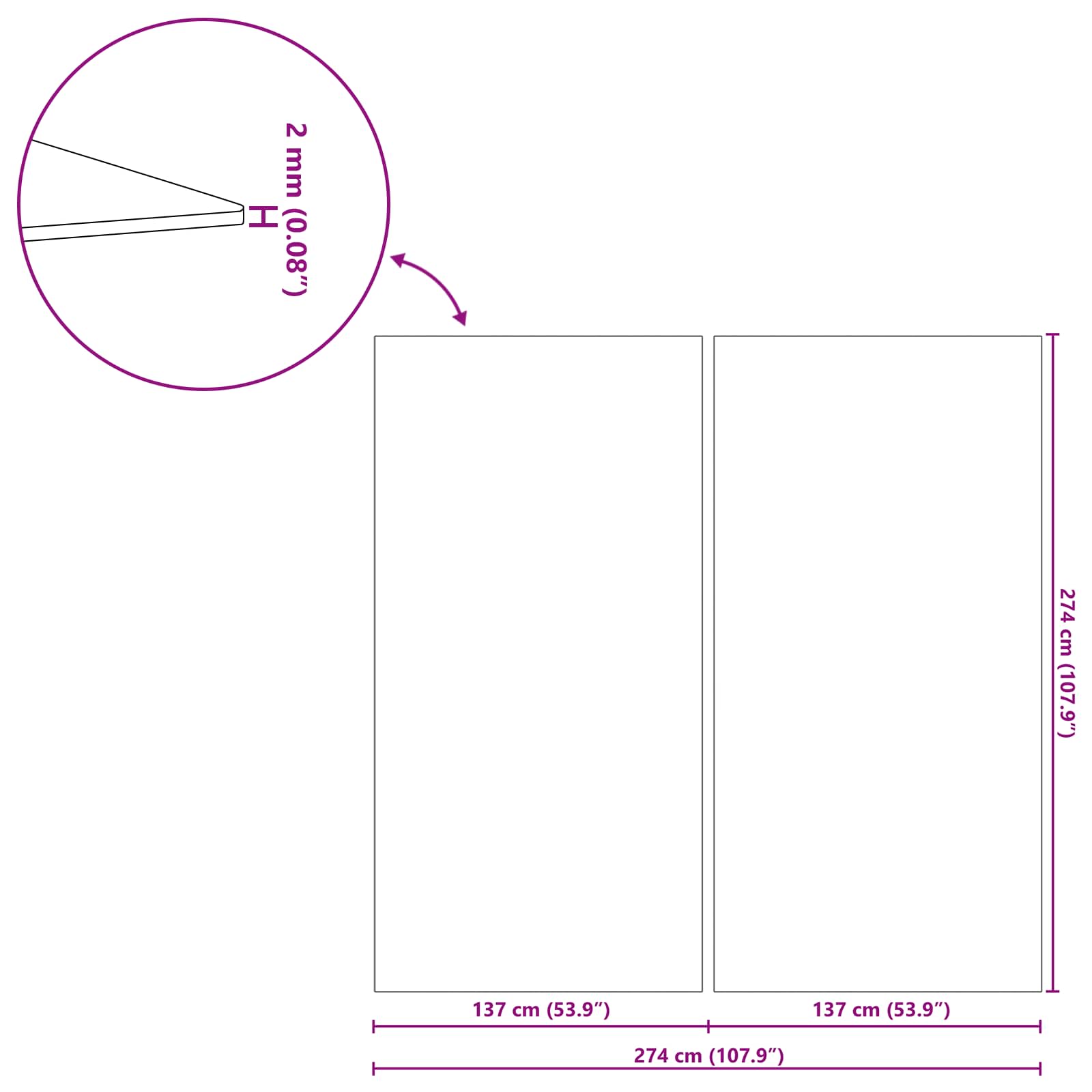 - Dimensioni complessive: 274 x 274 x 0,1 cm (L x P x A)