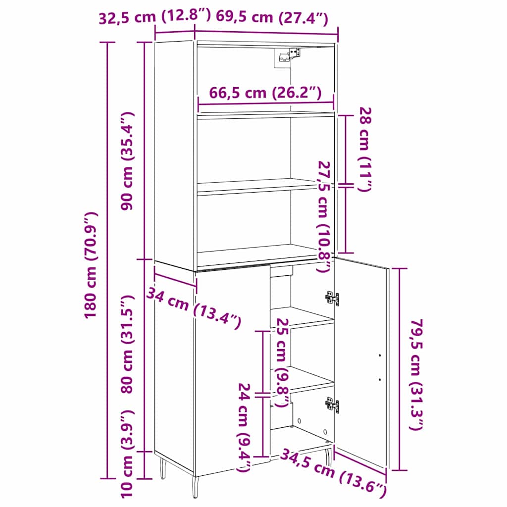 - 1 x Top per Highboard: 69,5 x 34 x 90 cm(LxWxH)