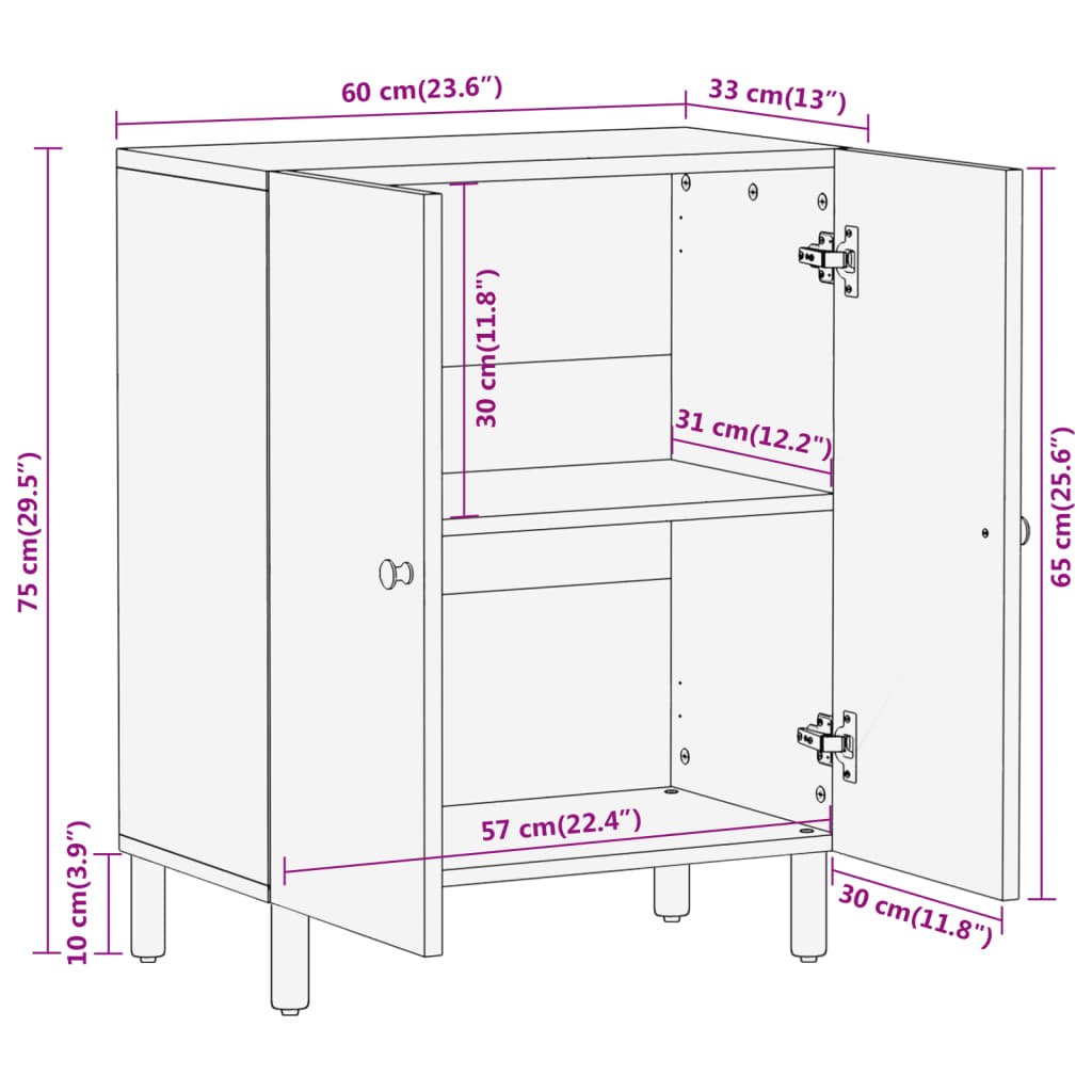 Credenza 60x33x75 cm in Legno Massello di Mango 356893