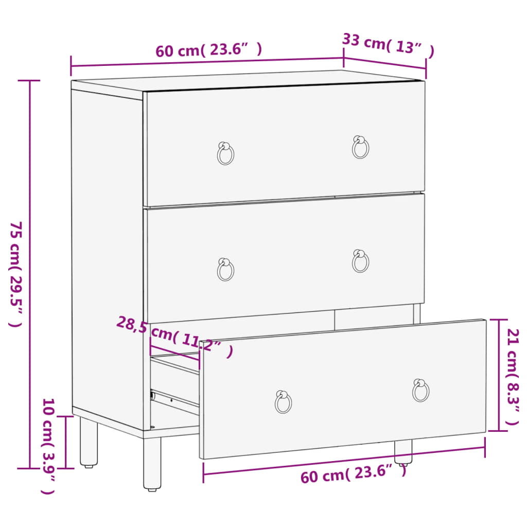 Credenza 60x33x75 cm in Legno Massello di Mango 358215