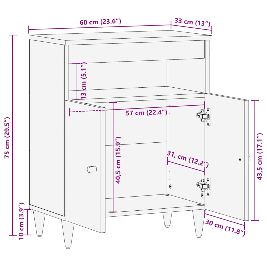 Credenza 60x33x75 cm in Legno Massello di Mango 358309