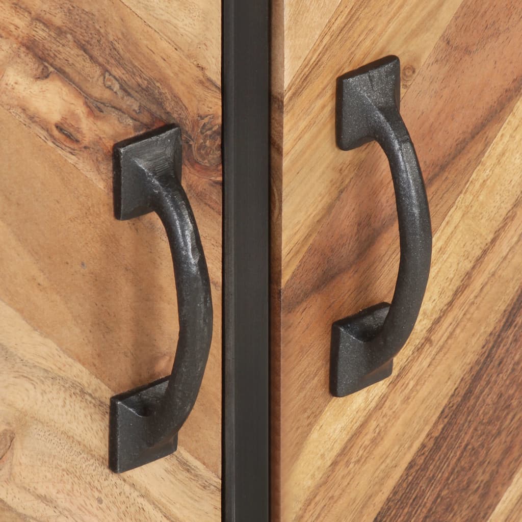 Il mobile laterale è realizzato in legno massello di acacia, un legno duro dalle dense venature, che lo rendono stabile e resistente. Il telaio in acciaio aggiunge anche una maggiore stabilità. Questo armadio è dotato di due ante, offrendo ampio spazio per tenere i vostri oggetti organizzati e a portata di mano.