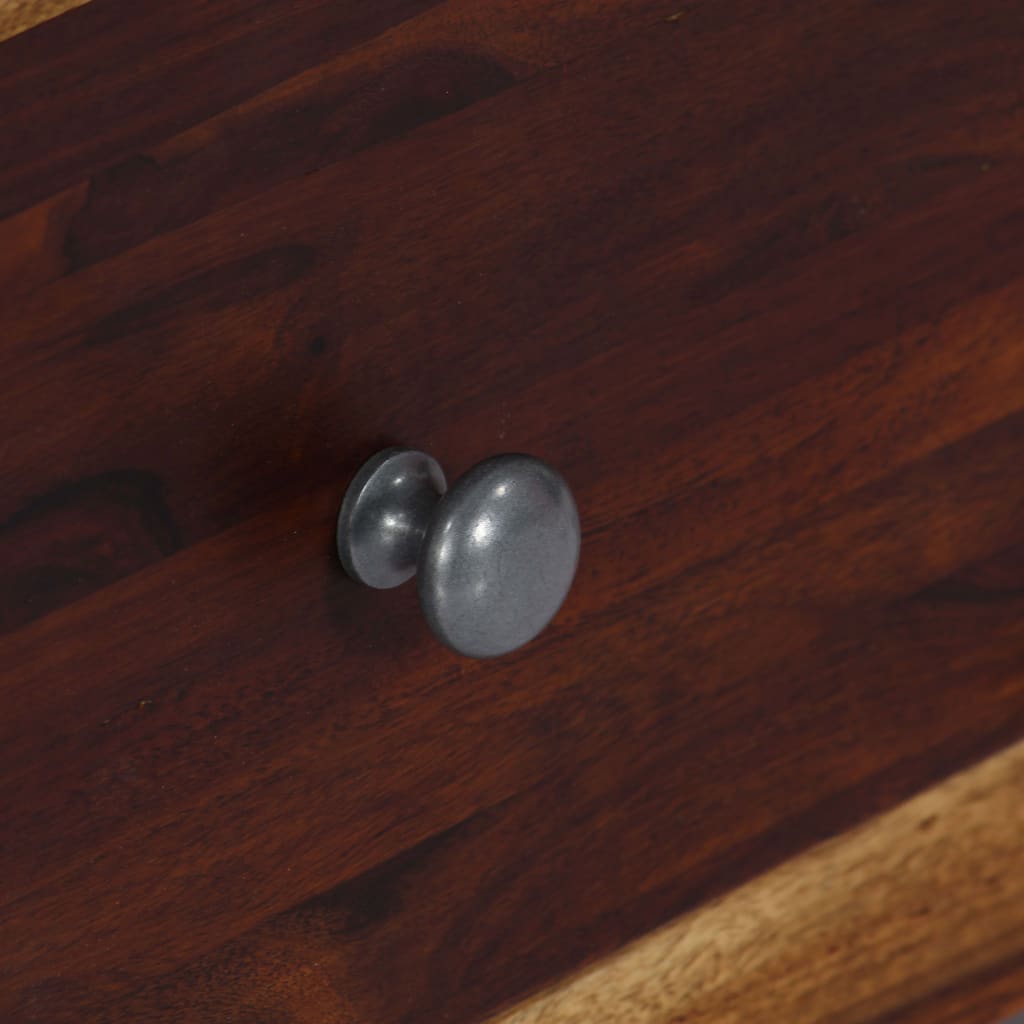 La credenza è realizzata in legno massello di acacia, noto anche come palissandro o dalbergia, è un legno duro tropicale famoso per le sue venature naturali e la consistenza morbida. Inoltre, non si deforma o si spezza e ha una naturale resistenza al decadimento. Di conseguenza, questo tavolino è estremamente stabile, durevole e accattivante. La lavorazione artigianale e le venature del legno esteticamente accattivanti conferiscono ad ogni mobile un tocco sui generis e leggermente diverso dagli altri. Ogni fase del processo viene effettuata con la massima cura, che si tratti di ricombinazione, lucidatura, pittura o laccatura.