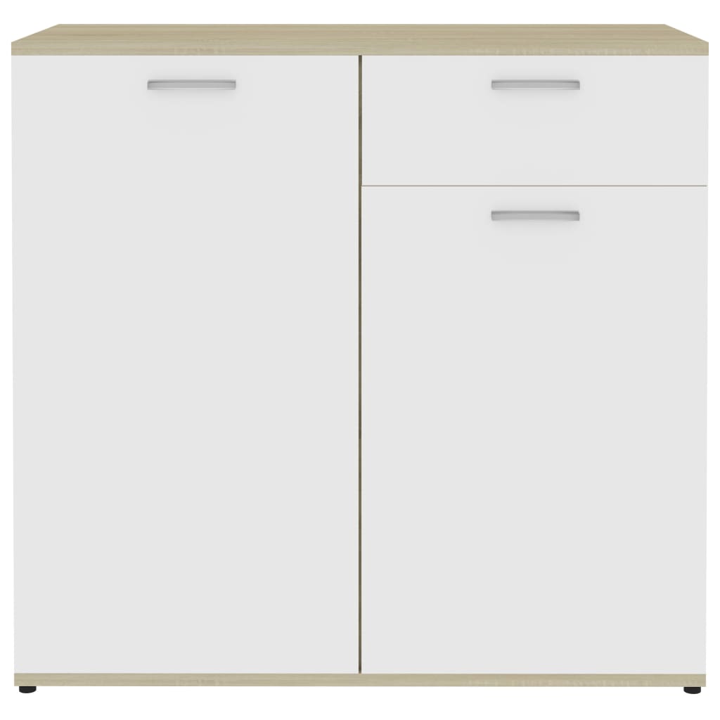 Credenza Bianca e Rovere Sonoma 80x36x75cm in Legno Multistrato 801837