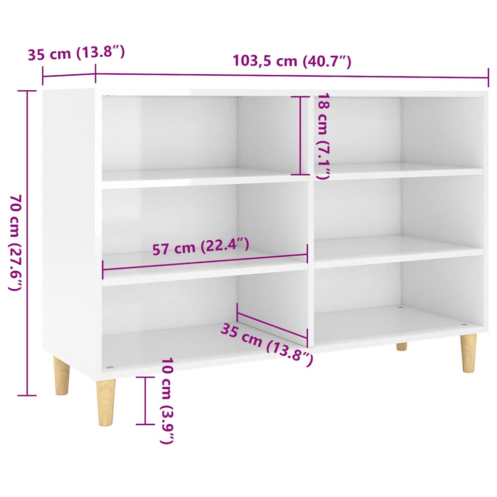 Credenza Bianco Lucido 103,5x35x70 cm in Legno Multistrato 806037