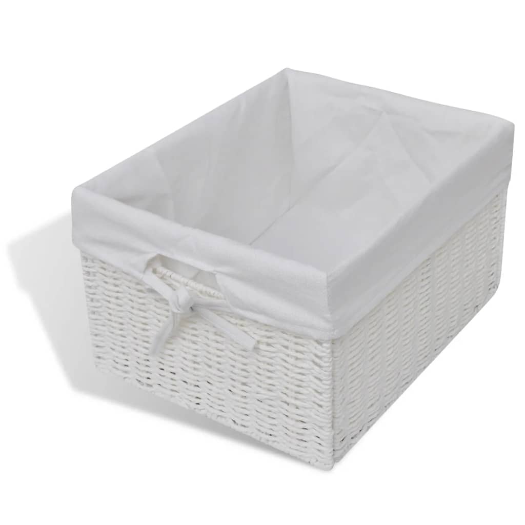 Questa sobria e romantica credenza bianca con cestini intrecciati rappresenta un'eccellente soluzione per riporre gli oggetti in camera da letto, corridoio o bagno.