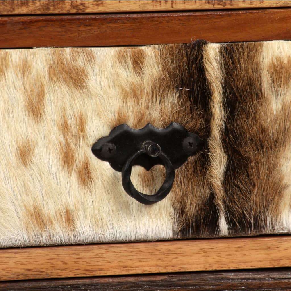 La nostra elegante credenza caratterizzata da dettagli in vera pelle di mucca e decorazioni intagliate a mano sarà al centro dell'attenzione nella vostra casa, fornendo al contempo una soluzione ideale per mantenere i vostri accessori organizzati e per tenere il disordine fuori dalla vista.