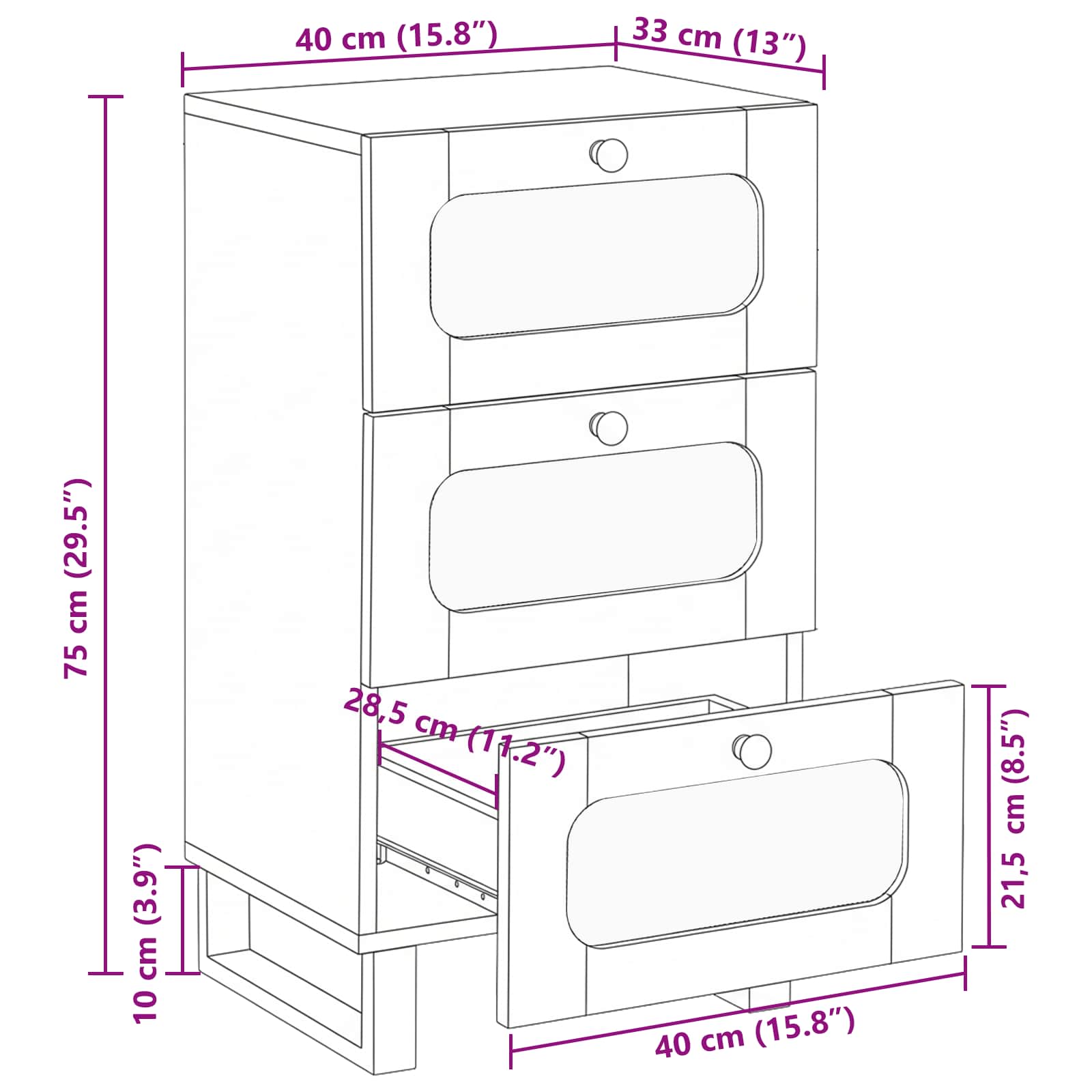 - Dimensioni complessive: 40 x 33 x 75 cm (L x P x A)